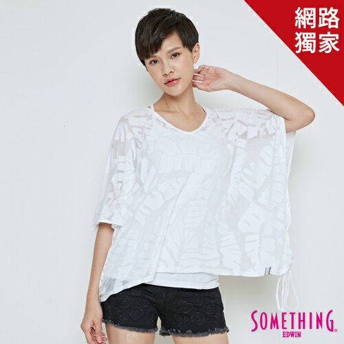 None, 【最愛T恤專區。490均一價↘】SOMETHING 葉脈燒花 寬版綁帶上衣-女款 白色。在樂天市場的EDWIN有最棒的商品,是您省錢的最佳選擇。